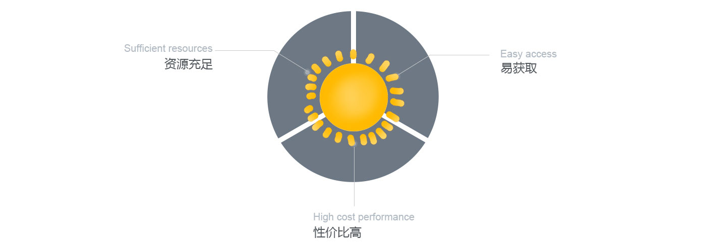 太陽(yáng)在地球上每照射一小時(shí)所產(chǎn)生的能量,就可以滿足全球整年的能源需求。與需要提煉燃燒化石燃料,占地又費(fèi)時(shí)的傳統(tǒng)能源不同,任何人都能購(gòu)買(mǎi)和安裝太陽(yáng)能組件并享受豐富的太陽(yáng)能資源。從長(zhǎng)遠(yuǎn)來(lái)看,使用太陽(yáng)能還可顯著并長(zhǎng)期節(jié)約用電成本。
